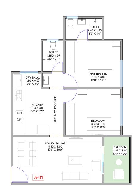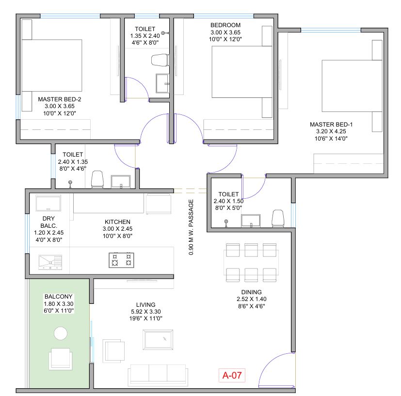2 BHK 2 BHK – 712 to 807 sq. ft. 90 Lacs
